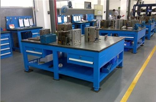鉗工工作臺用安裝臺虎鉗,放置工具和工件等,其高度約為800到900毫米,以方便工作。正面的掛圖架可放置裝配圖及零件圖。桌內可定制擺放常用工具。配有照明燈具。