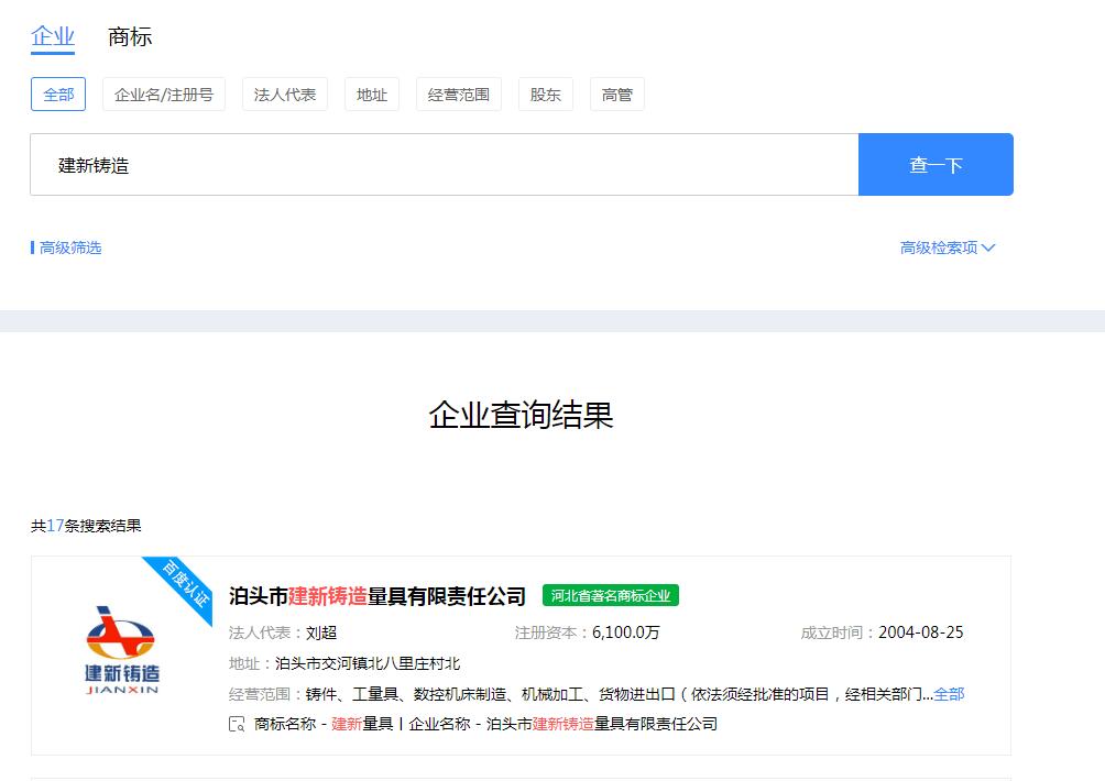 查詢網址:https://xin.baidu.com 您可在上面查詢建新鑄造的所有權威信息。